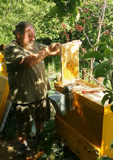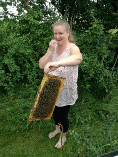 Daniela ist mehr mit der Verarbeitung wie z.B. dem Schleudern, Abfüllen und Beschriften, sowie der Vermarktung beschäftigt.